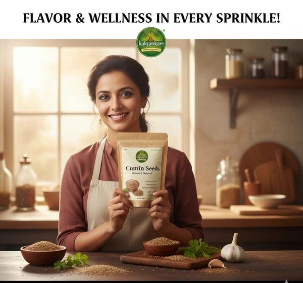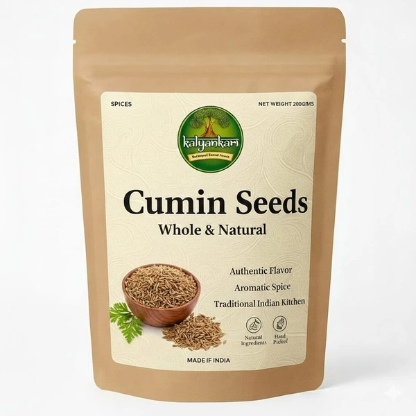 Discover the rich, warm, and aromatic spice that is the heart of Indian cooking with Kalyankari Premium Whole Cumin Seeds (Jeera). Sourced directly from the best farms, our 200g pack contains whole, sun-dried cumin seeds, ensuring maximum freshness and potency for your kitchen.