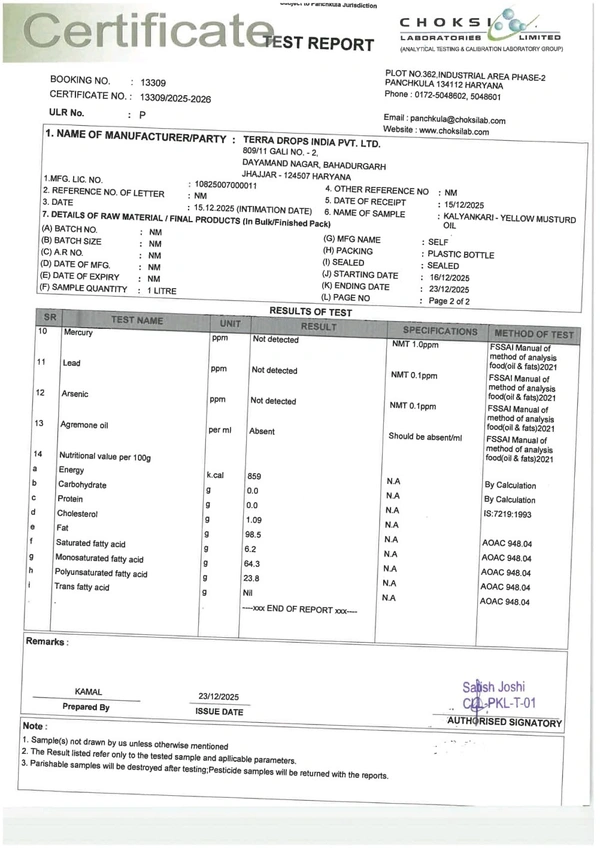 KALYANKARI Yellow mustard wood pressed oil